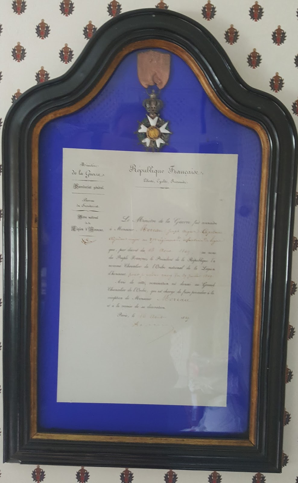 Joseph Auguste Moreau. On y trouves son sabre modèle 1845, son hausse-col, ses épaulettes, sa légion d'honneur et une décoration turque, l'ordre impérial du Médjidié.