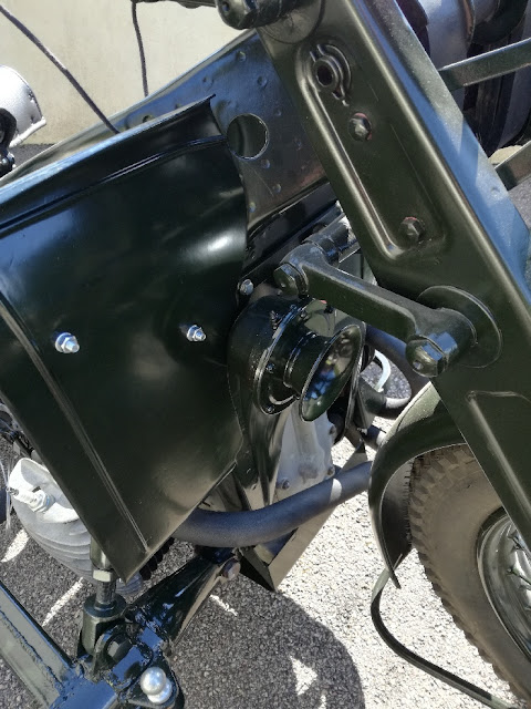 Un bon look malgré la peinture rouge, avec support de plaque militaire et queues de cochon